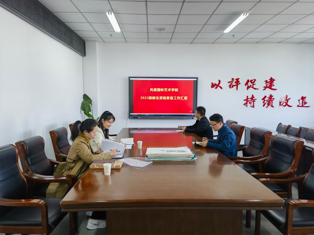 2023年11月8日上午校教务处工作组同志,教务处学籍管理科罗婧科长、教务科周阳老师到风景园林艺术学院深入开展2023级新生资格复查检查工作,风景园林艺术学院教学副院长张志锋、教学秘书黄泽平参加。