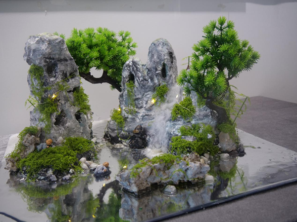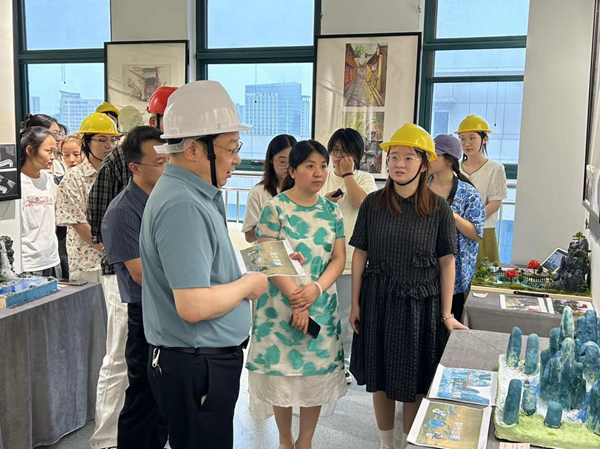 在学院“德艺双馨”育人工程的总体部署下,本次教学成果展以场景化教学活动-场地模型制作和假山模型课程教学创新成果展示为核心,师生共同打造沉浸式教学互动方式,重点突出学生们的参与度和体验感。整个展厅的布置及场景化沉浸式教学互动以实际工程现场为原型,展厅入口模仿工程现场入口方式,老师及学生进入展厅佩戴安全帽,通过施工环境的塑造为同学们营造一个良好的施工氛围,力求达到“环境育人”的效果,让同学们真正懂得了课堂上老师所讲的严谨负责的工作态度及匠人精神在专业领域中重要性。
