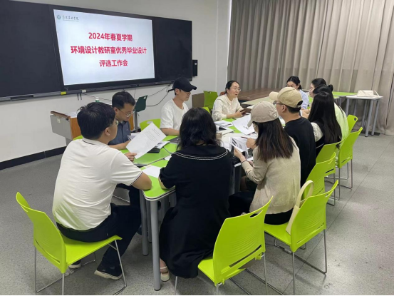 会议开始,教研室主任徐曼对环境设计专业本科优秀毕业论文(设计)评选工作的评选原则与标准、评选程序做了介绍。随后,校内专业教师及企业代表从选题、内容、创新性等方面评阅了环境设计专业拟推荐优秀毕业论文(设计)同学的论文及图册,对专业上报的7篇毕业论文(设计)进行了严格审核,最终评选出3份2024届校级优秀毕业设计(论文)。