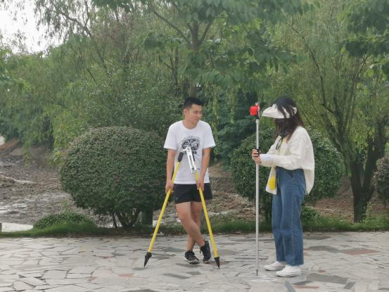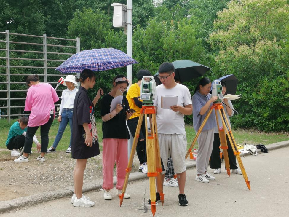 为巩固和加深课堂所学的理论知识,锻炼学生测量仪器使用技能与绘图能力,培养学生实地施测工作能力与积理数据处理经验,2021年6月21日上午,规划与设计学院教师孙威、吴晓春带领2019级城乡规划专业学生于beat365在线平台官网4-10号宿舍楼周边开展《工程测量》课程的教学实践。
