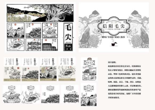 包装容器设计是反映具有时代特征的物质生活的侧影,2023年4月26日在艺术楼602展厅开展以“信阳茶筵”为主题的包装容器设计课程实践展。要求包装以及容器结构科学合理,包装材料选择得当,效果图画面构图完美,准确地传达商品内容,具有较强的视觉冲击力。