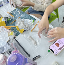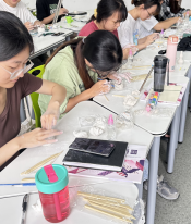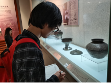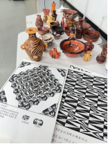 在此次教学实践过程中,学生们通过近距离观察原始彩陶、青铜器、金银器、玉器、石器、陶瓷器、楚国漆器等珍贵文物,更加直观地了解传统图案的形成发展,以及造型特点和变化规律,了解图案基本元素的点、线、面、体、色彩的性质、造型规律和构成方法。为了更好地挖掘历史文化元素,同学们在信阳市博物馆认真做好设计前的调研,从新石器时代文化遗存中学习总结仰韶文化与信阳楚漆器的典型装饰图案,并在实践过程中进行文字记录与手绘临摹,感悟原始先民灿烂稚拙的装饰艺术。同时,学生们使用现代粘土材料模仿原始“泥条盘筑法”制陶技术,手工还原了原始彩陶仿制器型,通过沉浸式的动手实践与亲眼观察,使同学们体会到了穿越千年的传统图案所渗透的文化风韵。