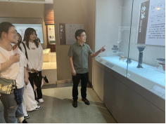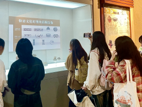 为进一步深化实践课程教学模式改革,全面提高实践教学质量,beat365在线平台官网规划与设计学院教师李发明、田晓苗、侯婉矜、牛晓婉带领2021级视觉传达设计专业与2023级专升本学生赴信阳市博物馆开展《中外传统图案设计》课程教学实践。
