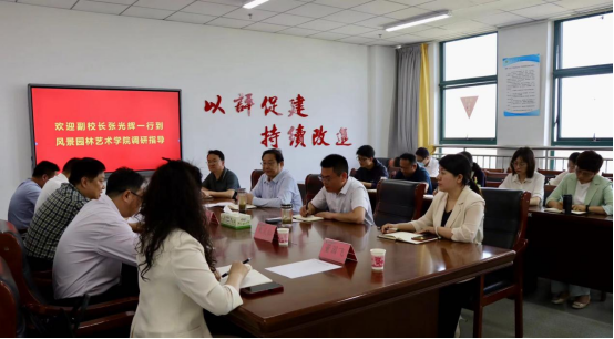 2024年5月13日上午,副校长张光辉带领科技处(社会合作处)处长刘纪成、副处长朱庆松、刘秋员、董园飞一行5人到风景园林艺术学院调研指导工作。学院领导班子、教研室主任、专业带头人、高级职称人员及博士代表参加座谈。会议由风景园林艺术学院党总支书记张广强主持。