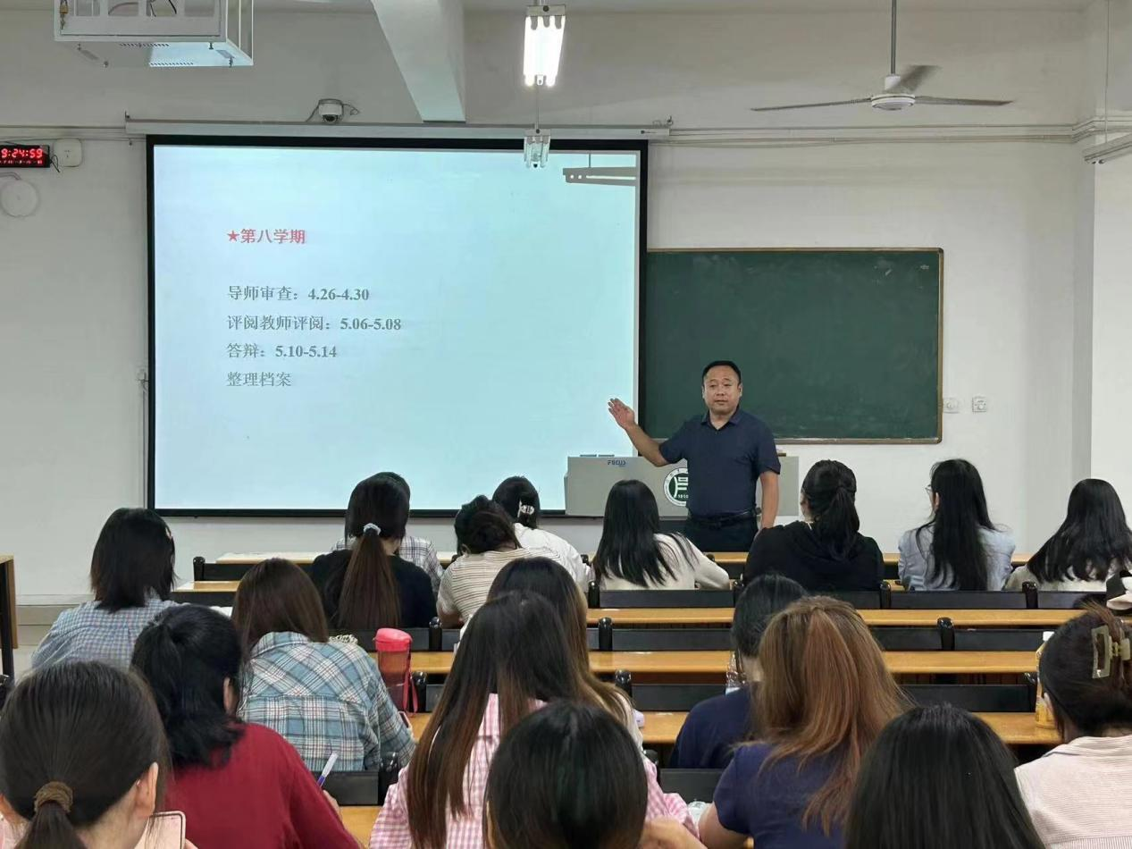 为确保毕业论文(设计)工作的顺利进行,各教研室主任向学生们提出了具体要求:一是要严格按照学院制定的时间表和工作计划推进各项工作,确保按时、按质、按量完成任务;二是要树立正确的学术观念,恪守学术诚信原则,坚决抵制任何形式的学术不端行为;三是要合理安排时间,妥善平衡毕业论文(设计)与考研、就业之间的关系。(撰稿/康莉 摄影/各教研室提供)