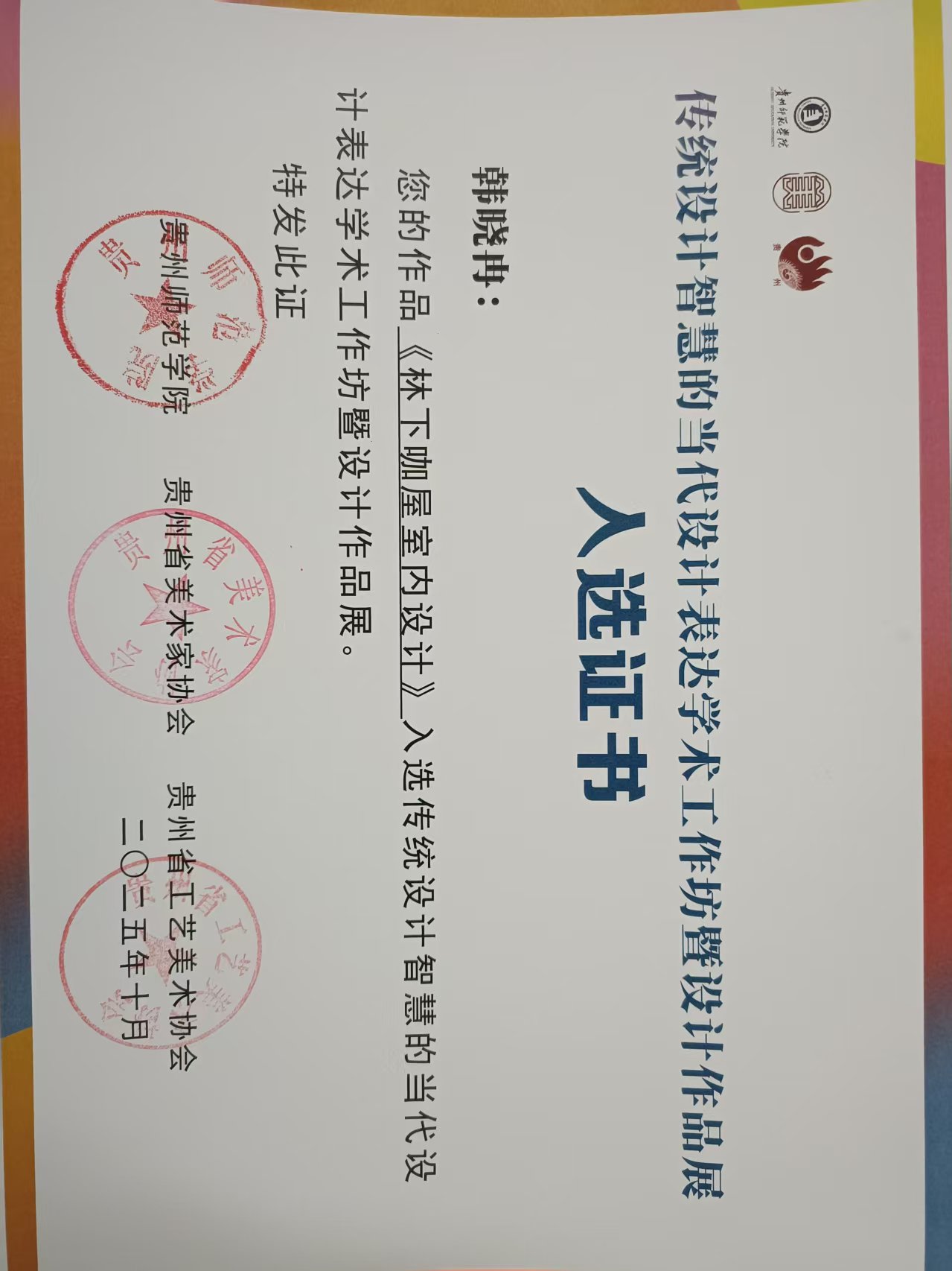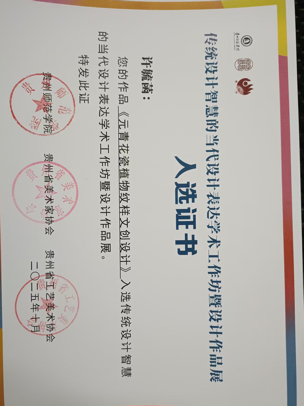 近日,由贵州省美术家协会、贵州省工艺美术协会、贵州师范学院联合主办的“传统设计智慧的当代设计表达学术工作坊暨设计作品展”入选结果揭晓,我院吴铻彤(指导教师:陈美序)、许毓菡(指导教师:康莉)、韩晓冉(指导教师:刘鸣鸣)、史奇玉(指导教师:刘昂)四位同学的作品凭借对传统设计智慧的创新诠释成功入选,充分展现了beat365在线平台官网在设计专业教学与实践中的卓越成果。