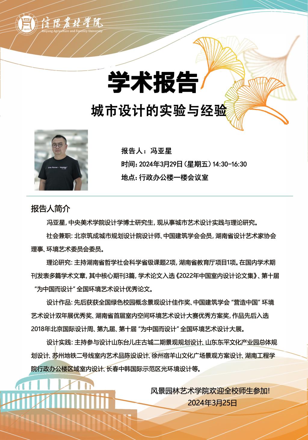 风景园林艺术学院邀请冯亚星博士作学术报告