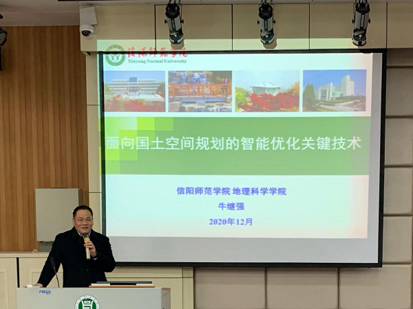 12月15日下午,规划与设计学院邀请信阳师范学院地理科学学院牛继强教授作《面向国土空间规划的智能优化关键技术》的专题学术报告。规划与设计学院副院长葛晖、城乡规划专业师生参加了报告会。