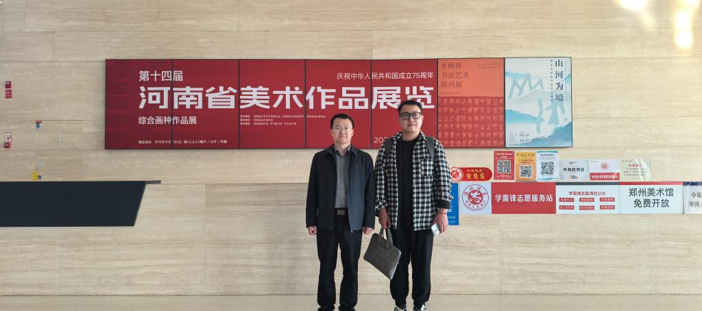 2024年10月19日-11月10日,由河南省文学艺术界联合会、河南省文化和旅游厅、河南省美术家协会主办的“庆祝中华人民共和国成立75周年——第十四届河南省美术作品展览综合画种作品展”在郑州美术馆(新馆)展出。风景园林艺术学院环境设计教研室教师张志锋、田坤前去观展。