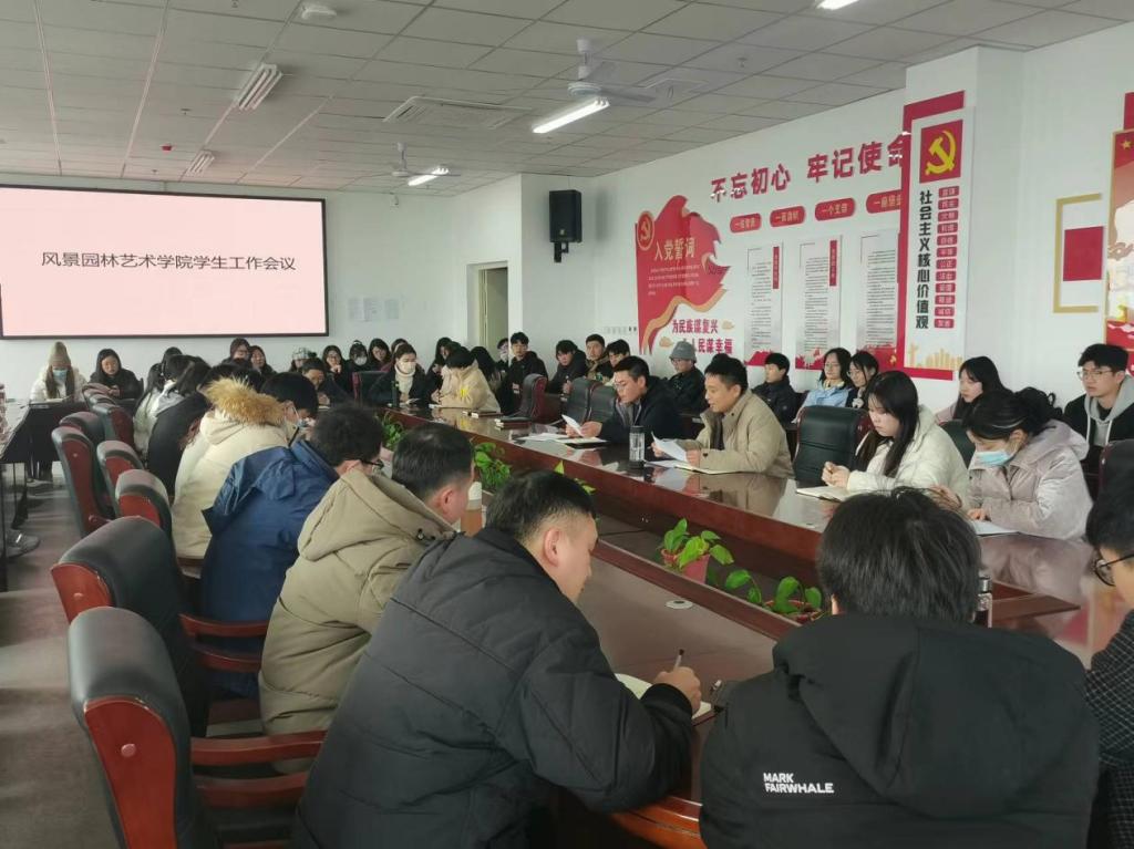 为扎实落实学校新学期工作安排,不断提升学生工作实效,增强学工队伍凝聚力,3月5日下午,风景园林艺术学院召开2024年春季学期第一次学生工作会议。学院党总支书记张广强、副书记耿城、全体辅导员、学生会学生及各班班长、团支书参会,会议由副书记耿城主持。
