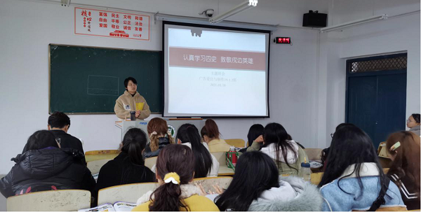班会中,各位辅导员老师以“四史”为主线,在班会上采取PPT展示、视频欣赏、学生红色故事分享等方式带领各班学生学习“四史”具体的内容和三个“为什么”,要求同学们在深入学习和不断领悟“四史”的同时,深化学习成效、筑牢初心使命。此外,在学习“四史”的基础上,各班辅导员还将疫情防控、戍边英雄事迹、脱贫攻坚作为班会主要内容之一,使同学们更加深刻领悟习近平总书记所说:“历史是最好的教科书,也是最好的清醒剂。”让同学们从中汲取精神力量,增加使命担当,坚定“四个自信”,走好中国发展道路,弘扬制度优势。并以此理解党的领导是历史和人民的选择,在原有的基础上进一步了解新中国的发展历程,增强同学们的爱国主义精神。