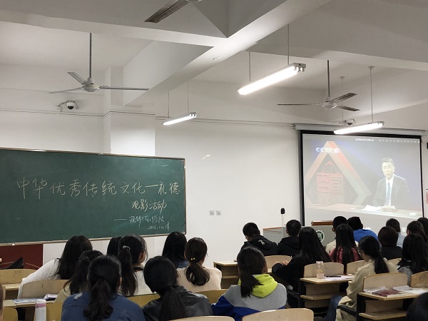 为了对即将启动的“艺术飞扬八德修身”——“礼”德绘画创作大赛进行预热,规划与设计学院于10月18日晚在二教207教室举办了“礼”德主题观影活动,此次活动由辅导员老师刘俊楠、杨雪莹、杨丽娜主持,2018级各专业同学到场观看。