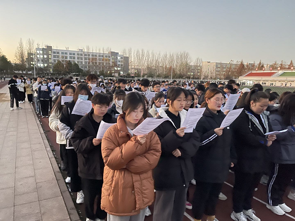 “中华人民共和国实行依法治国,建设社会主义法治国家。中华人民共和国公民在法律面前一律平等……”。活动期间,同学们积极参与学习,从操场传来了铿锵的朗读声,这是规划与设计学院21级全体学生慷慨的意志以及对宪法精神的执着信念,这是学生们以实际行动践行学校思政育人体系的实践。他们以声音为媒介,让宪法精神由耳入心,深深融入每个学生内心。此外,为强化我院学生法治思想入脑入行,我院还利用学生课前十分钟,让全院学生展开宪法知识学习。