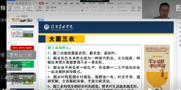 为帮助2022级农林学子快速完成角色转换,适应大学生活,树立“以强农兴农为己任”的意识,2022年9月14日上午,规划与设计学院副院长张志锋通过腾讯会议平台为2022级全体师生做了“大国三农”新生入学教育。