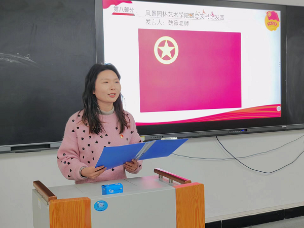 2023年12月26日下午,我院在文学艺术楼508A教室召开了“风景园林艺术学院新团员入团宣誓仪式”,团总支书记魏薇、辅导员刘俊楠、李美萱、黄慧慧同学院新老团员近40名师生参与了此次仪式。