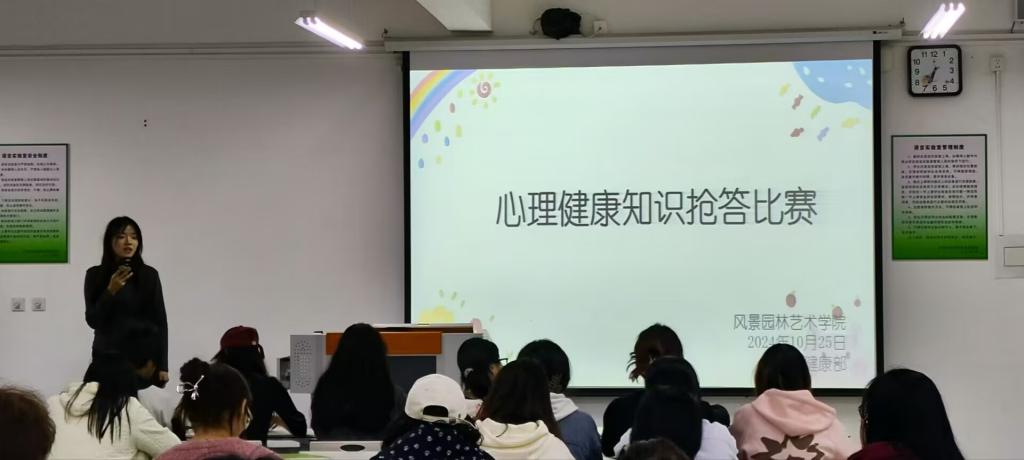 为向学生广泛宣传心理健康知识,拓宽心理健康教育途径,积极营造良好的心理健康教育氛围,风景园林艺术学院于10月25日开展大学生心理健康教育文化节之“心理健康知识”抢答比赛活动。