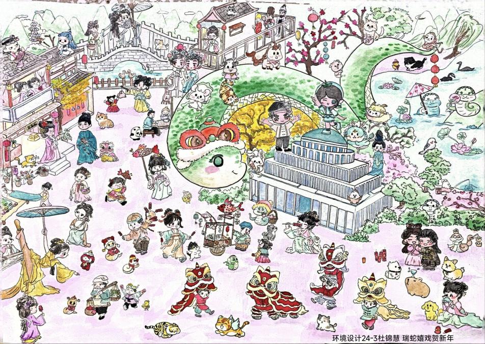 为深入贯彻党的二十大关于 "推进文化自信自强" 的精神号召,值此乙巳蛇年新春来临之际,我院于2024年寒假期间开展了 "绘蛇年灵韵,展青春华彩" 主题绘画活动,并于2025年2月28日对作品进行评比。