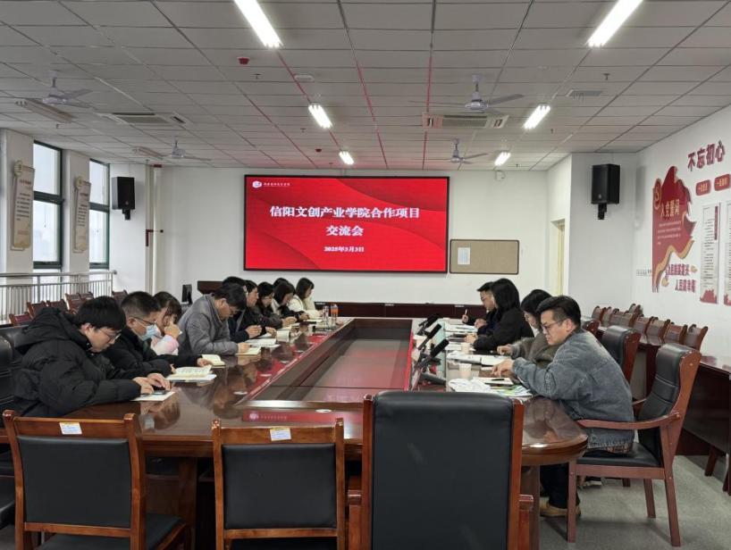 为进一步推进产教融合、协同育人,推动信阳文创产品设计与开发,3月3日下午,风景园林艺术学院在艺术楼702会议室召开信阳文创产业学院合作项目交流会,信阳美术馆馆长高静一行5人参加了交流会。学院党委书记张广强、副院长葛晖、视觉传达设计教研室主任姚令华、学院骨干教师参加座谈交流。