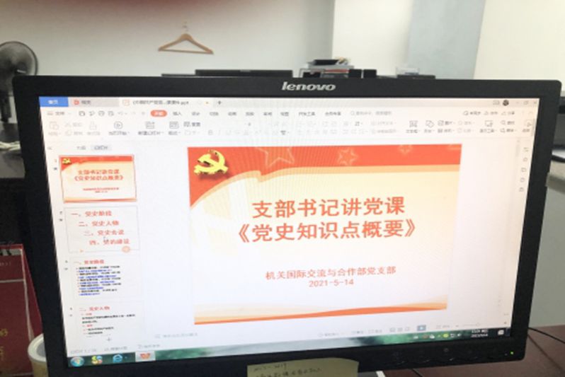 为深入开展党史学习教育,提高全体人员思想政治水平,5月14日,国际交流与合作部党支部组织开展了专题党课学习活动。