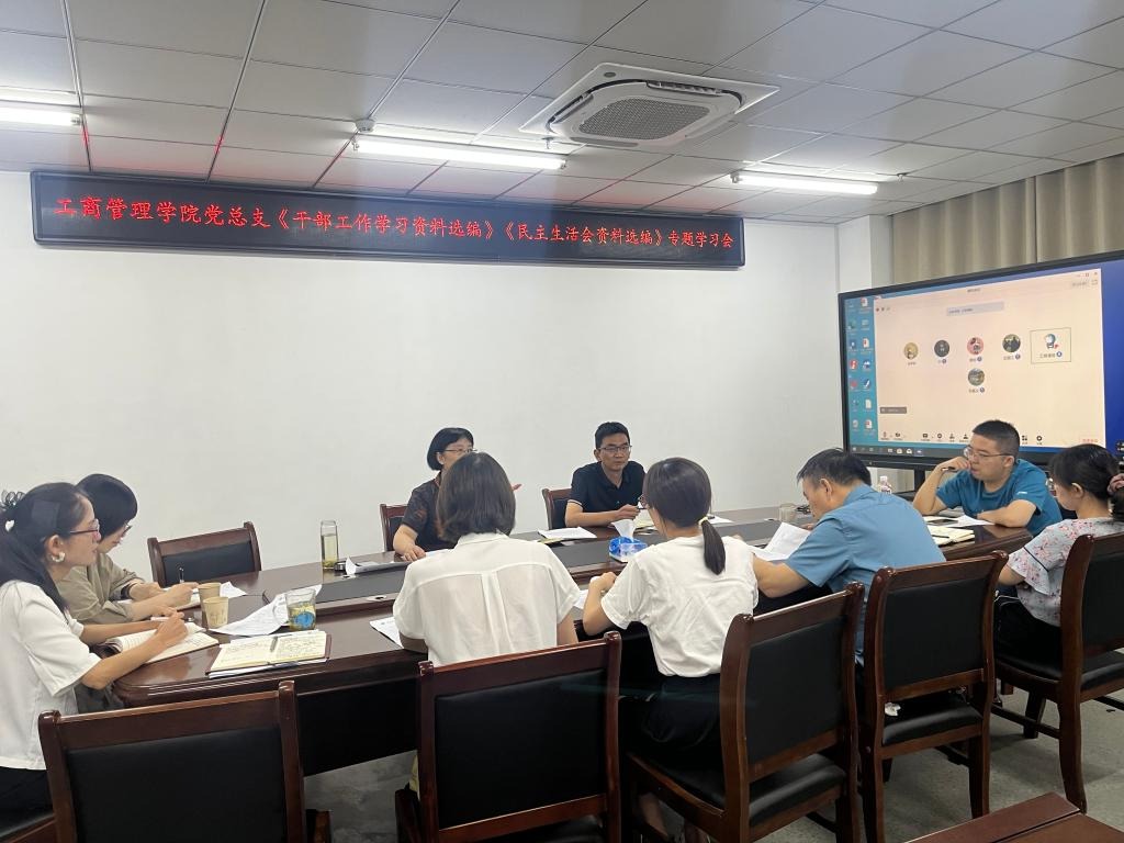8月3日上午,工商管理学院党总支在双创中心215会议室召开《干部工作学习资料选编》《民主生活会资料选编》等文件精神的专题学习会。会议由学院党总支书记主持,学院班子成员参加会会议,院科级干部列席。
