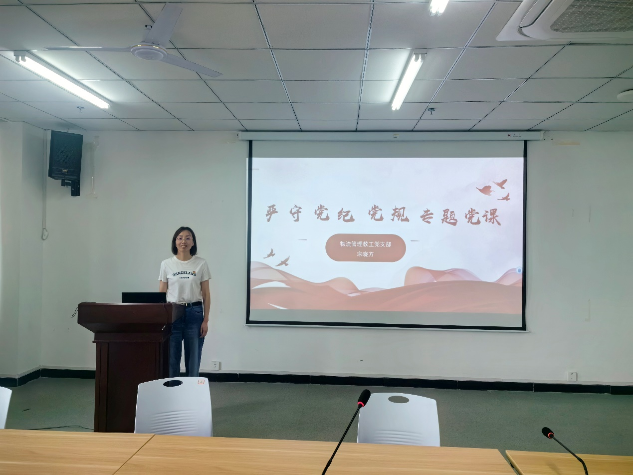为深入学习贯彻习近平总书记关于党纪学习教育重要讲话和指示精神,落实全面从严治党主体责任,扎实推进支部党纪学习教育工作部署,5月21日,物流管理教工党支部书记宋晓方为支部全体党员上了一节专题党课。