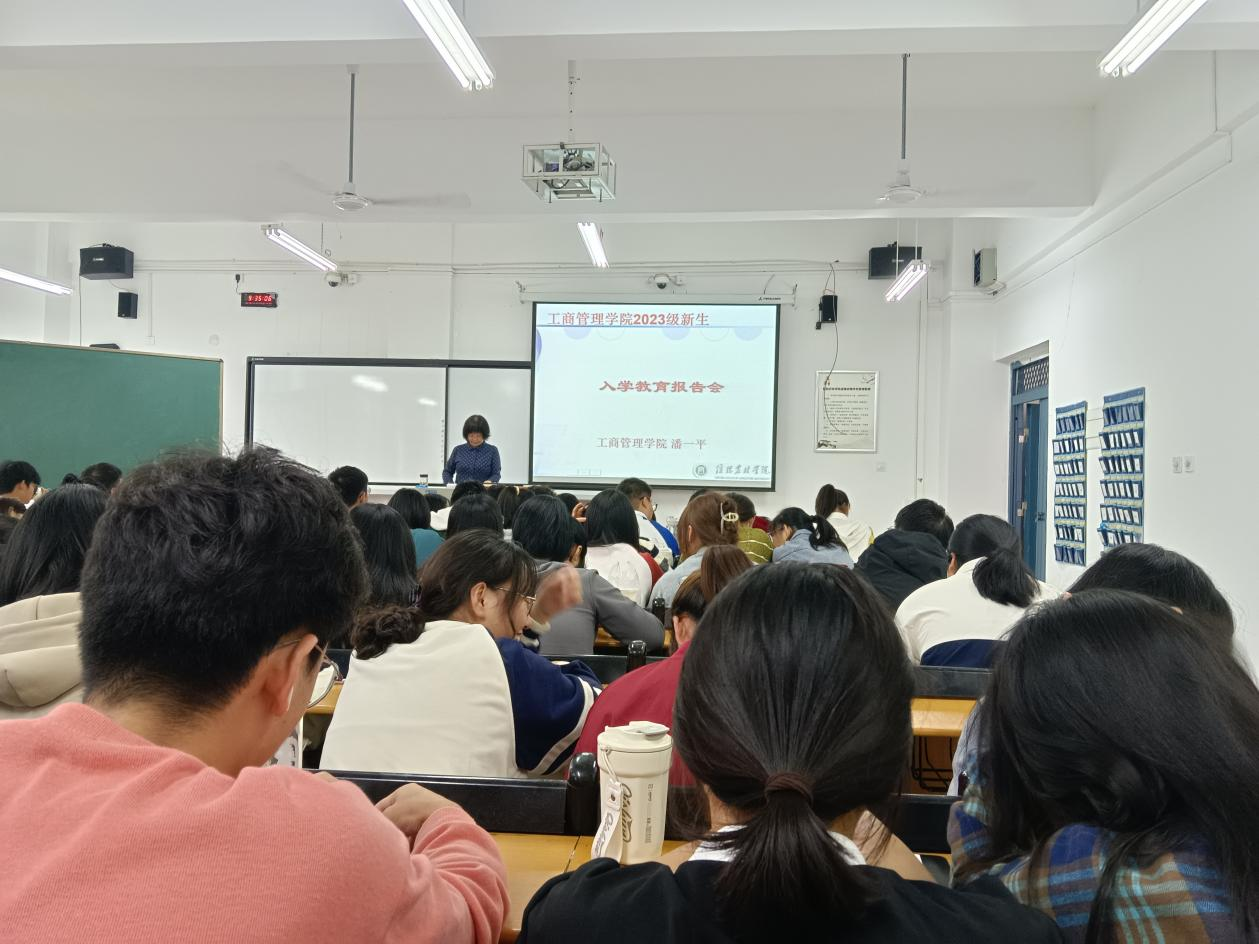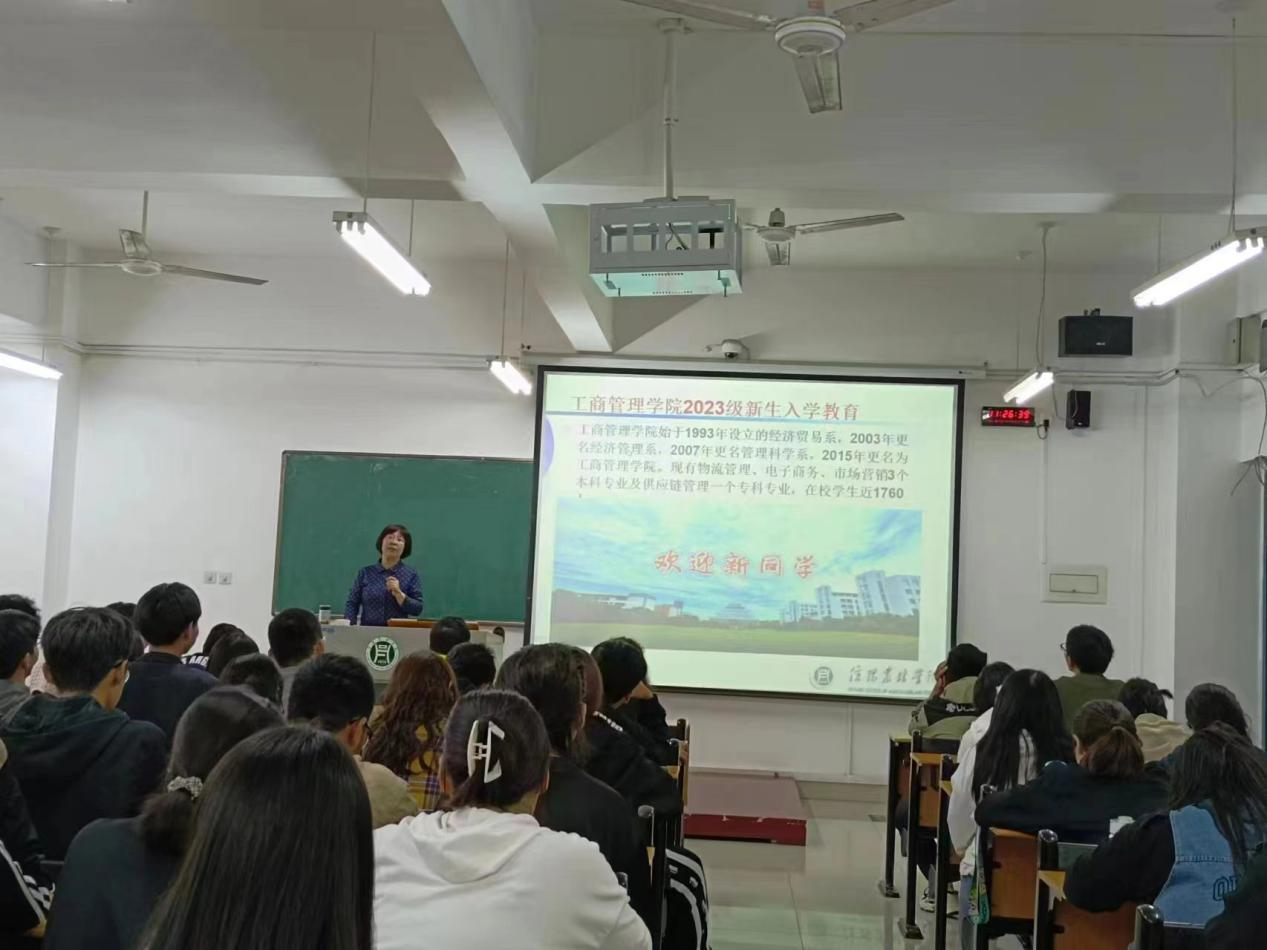 工商管理学院在金秋9月喜迎23级新生的到来,为使2023级新生能够尽快融入大学生活,了解院情,9月25日上午,学院举办了新生入学教育之校情、院情介绍。报告由工商管理学院院长潘一平主讲,2023级全体新生参加。