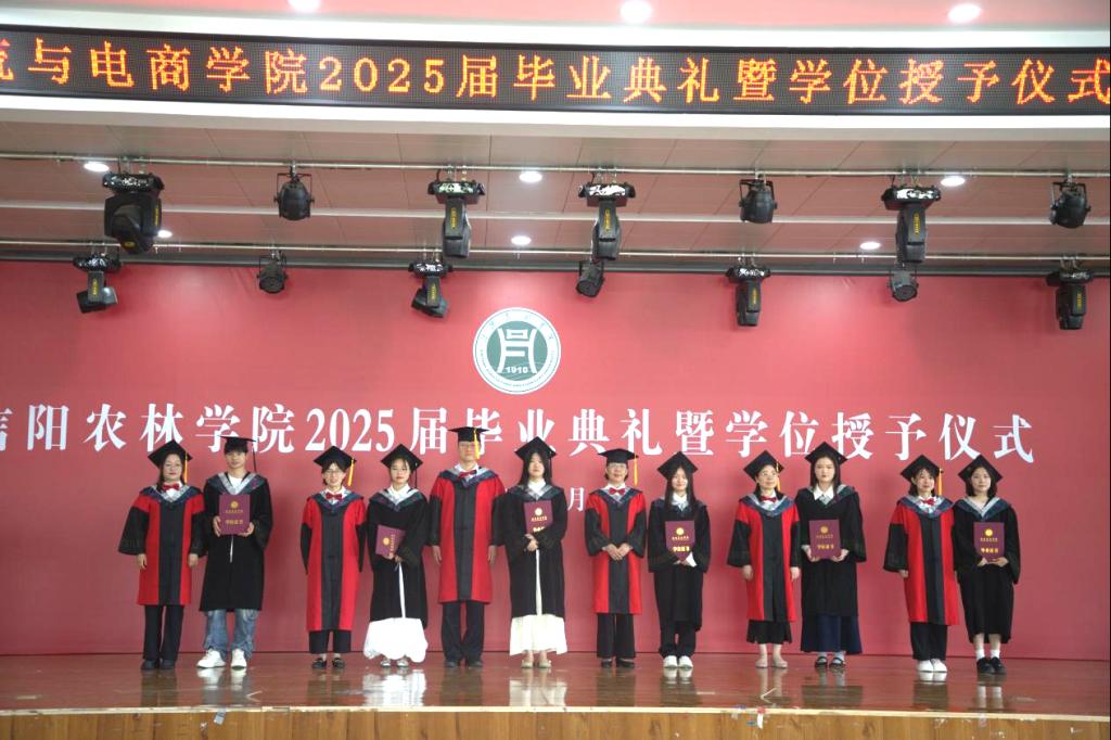 学院学位评定分委员会副主席潘瑶宣读了2025届毕业生学士学位授予决定及名单。教师代表潘玉辰、毕业生代表赵苡骏、在校生代表刘鑫鑫上台发言,为2025届毕业生送上美好祝福,期望同学们步入社会后继续保持学习热情,以专业能力和积极态度在岗位绽放光彩。吴磊、潘一平、潘瑶、郭昭君、田乐、梅宝林为毕业生授予学位证书并拨苏正冠。