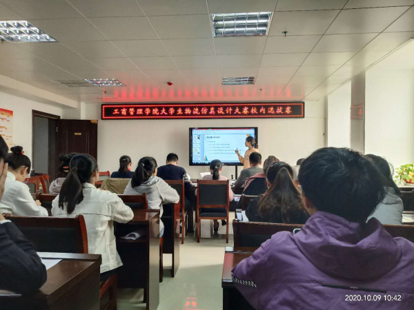 2020年10月9日上午,第七届河南省大学生物流仿真设计大赛校内选拔赛在行政楼717举行。工商管理学院院长潘一平教授、副院长唐芳副教授、物流管理教研室主任尚扬、副主任梅宝林及物流管理专业专任教师王静、李东、陈国宏担任本次比赛的评委。