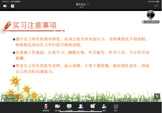 会议最后王振江老师预祝各位学子圆满完成实习任务,希望毕业生更好的认清形势、把握机会,在实习中培养实践能力,为走上工作岗位做好充分的准备。