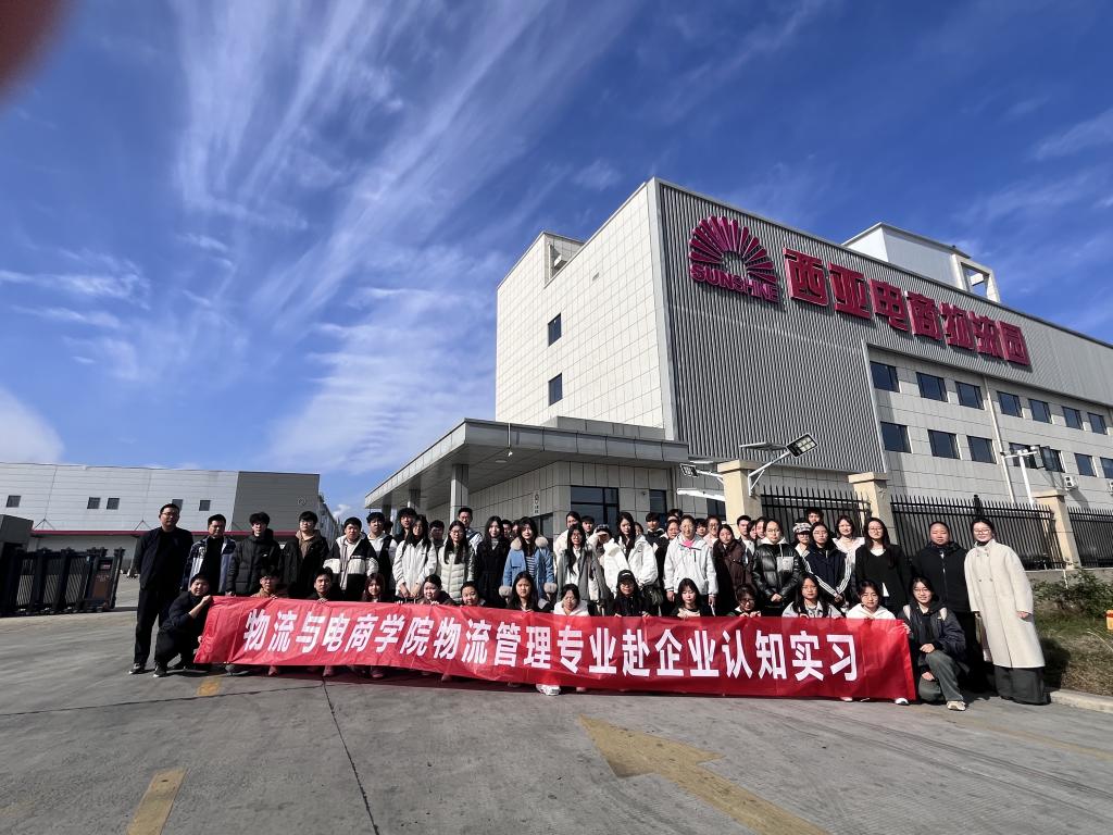 11月22日,物流与电商学院物流管理教研室组织2025级物流管理专业学生前往信阳西亚电商物流园,开展了一场以“走进物流现场,感知专业未来”为主题的专业认知实践活动。本次活动作为新生专业教育的重要环节,旨在帮助学生直观了解现代物流的运作流程,为后续专业学习与个人发展规划打下坚实基础。