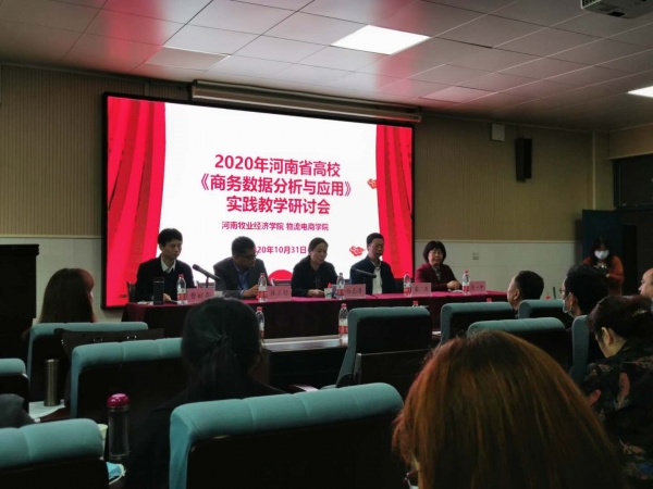10月31日,由河南省电子商务教学指导委员会和杭州数字产业学院主办,河南牧业经济学院物流与电商学院承办的河南省本科高校《商务数据分析与应用》实践教学研讨会在英才校区生鲜电商与冷链物流学科创新基地举行,工商管理学院院长潘一萍、副院长唐芳、张世军及电子商务、市场营销和物流管理教研室主任一行8人参加了此次研讨会。