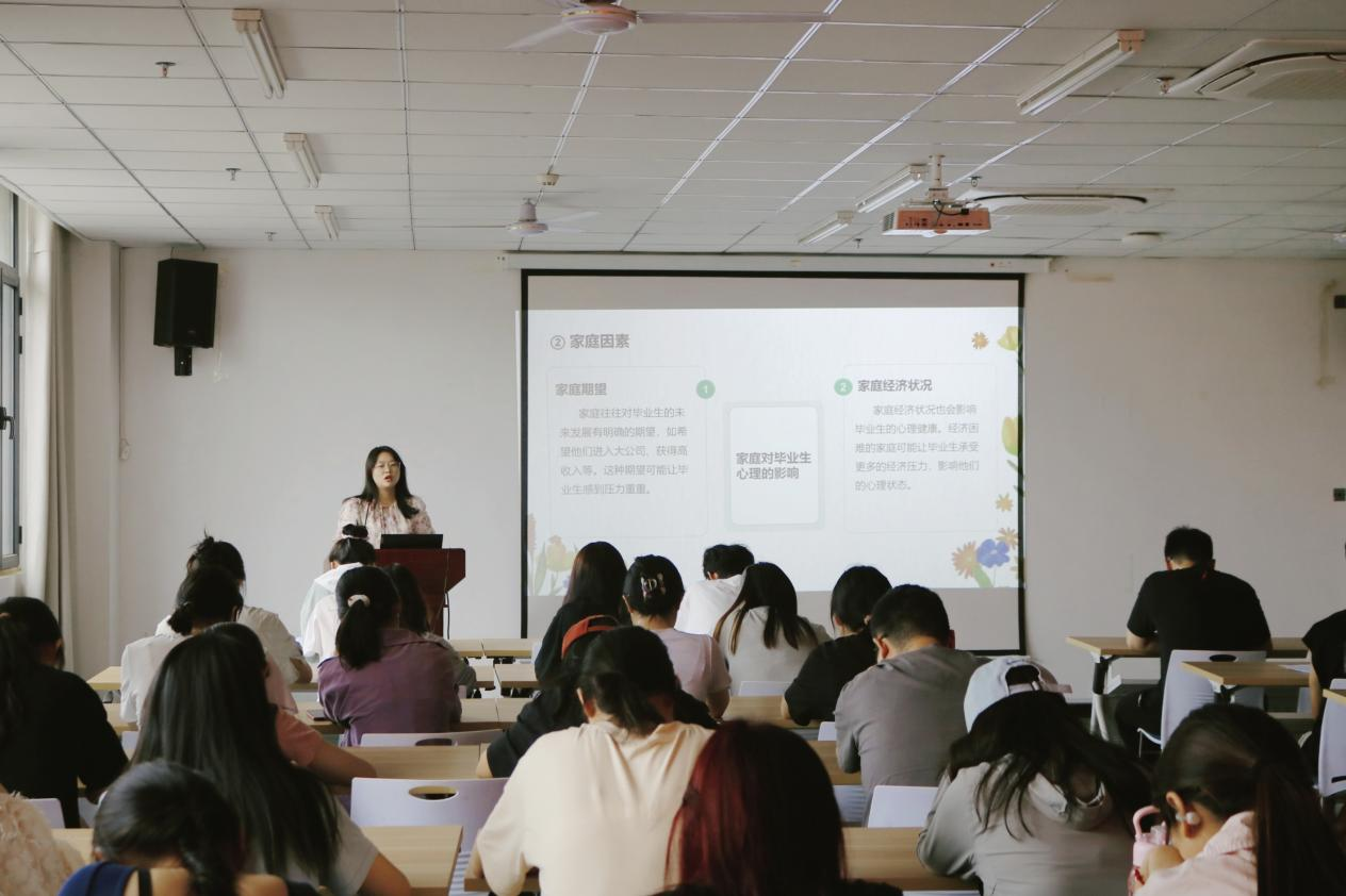 为助力毕业生以良好心态地应对毕业季挑战,5月27日,物流与电商学院在双创中心208开展了2025届毕业生心理健康教育,由心理专员王瑶瑶主讲。