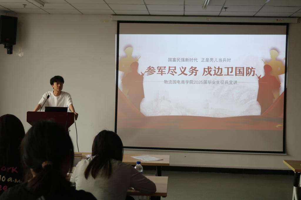 热血青春,逐梦军旅。为鼓励毕业生积极响应国家号召,投身国防事业,5月27日,物流与电商学院在双创中心208召开了2025届毕业生入伍动员会,会议由武装专员姜朝阳主讲。