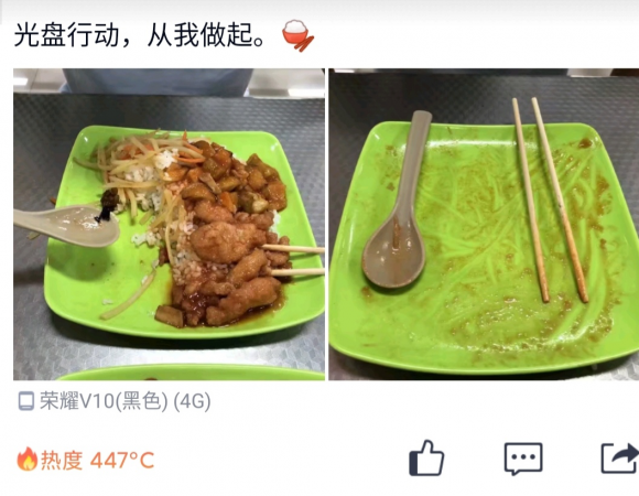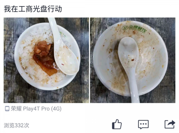 工商管理学院通过“信农工商”这一学院官方公众号,向大家介绍了“光盘行动”的起源、必要性并号召大家争做“光盘侠”,呼吁同学们进行光盘打卡活动,并取得了显著效果。