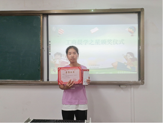 首先主持人宣布颁奖仪式正式开始,入选的5名同学依次上台进行简短的介绍自己晨学的内容和安排。有的同学分享自己的早读的计划,能够安排好早读的时间,尽量将时间最大利用化,把效率提到最高;有的同学坚持早起跑步,强健体魄……最后,主持人为他们颁发证书和奖品,以资鼓励,颁奖仪式最终圆满结束。
