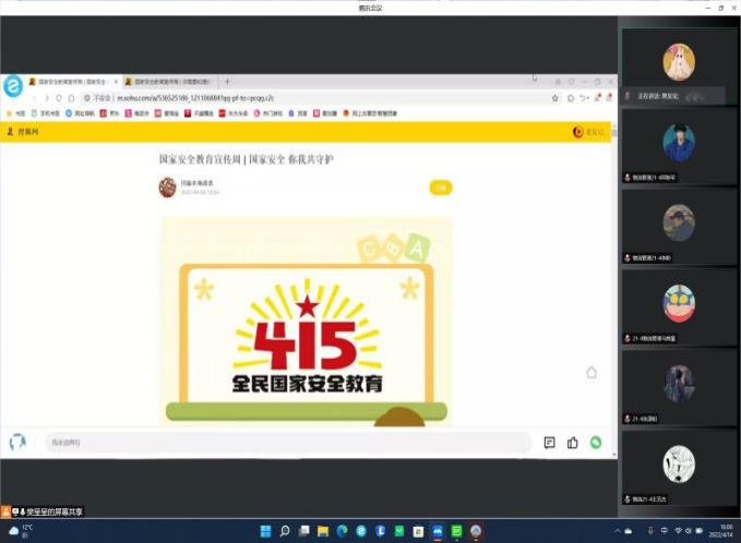 中国大学生在线、腾讯面向全国高校师生共同推出《千万师生同上一堂国家安全教育课》,我院积极响应,组织全院学生错峰错时观看学习,并撰写心得体会,进行热切交流讨论。线上学习引起学生热烈反响,纷纷表示在以后的学习中自觉遵守校规校纪、积极配合学校疫情防控工作安排、自觉抵御境内外不法分子的渗透活动等,积极为国家安全贡献力量。