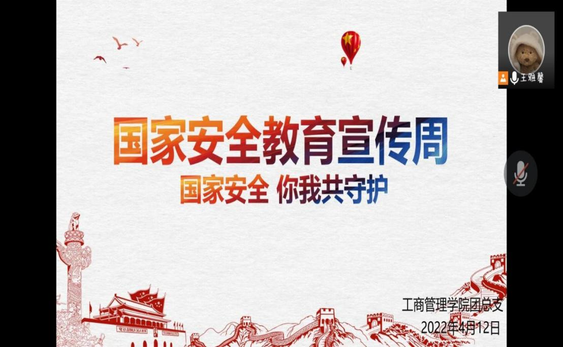 为营造国家安全教育宣传氛围,感悟新时代国家安全成就,工商管理学院团总支书记带领团学干部进行国家安全教育日的有关知识学习。从“全民国家安全教育日的由来、什么是国家安全、国家安全教育主要内容”等方面进行了介绍,并展示一些危害国家安全的案例,带大家一起学习国家安全知识,提醒大家要警惕各类危害国家安全的行为,自觉维护国家安全。