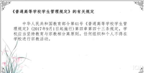 此次新生入学教育——宗教知识学习的开展,不仅加深了同学们对马克思主义宗教观与党的宗教政策的认识,提升了同学们提防邪教势力的意识,进一步增强了同学们的法治意识。