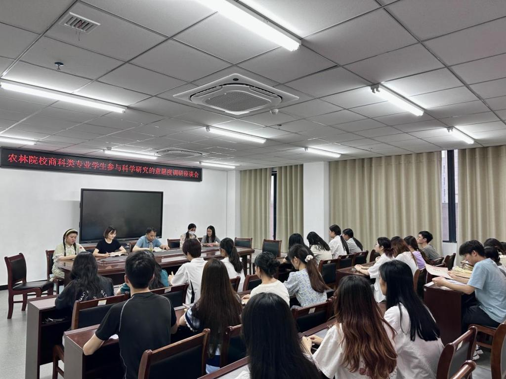 为贯彻落实创新教育,提升学生的科学研究能力,了解学生的科研意愿以及对我院在培养其科研能力方面的诉求,2023年5月21日,工商管理学院在双创中心215召开学生参与科学研究的意愿度调研师生座谈会。本次会议由副院长张世军教授主持,市场营销教研室副主任袁俊、专任教师高钰君、宋歌、刘源以及电子商务教研室专任教师孟益臣作为教师代表参加此次座谈,工商管理学院、财经学院学生代表参加了本次座谈会。