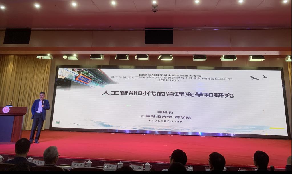 在大会的主题报告环节,南开大学商学院院长白长虹教授以“实践智慧与知识创造”为题,深入阐述数智时代管理学科理论与实践相互促进的关系。上海财经大学高维和教授在“生成式人工智能时代的管理变革和研究重点”的报告中,梳理了AI发展历程、营销面临的新挑战和当前研究进展,建立了AIGC管理的“工具-内容-体系”解构框架。Credamo见数创始人、中央财经大学姚凯副教授,河南财经政法大学牛全保教授,科大讯飞产教融合新商科业务部总经理陈超,郑州大信家居董事长庞学元,中铁装备信息与数字化院部长李东利,中原证券高级研究员石临源,海一云商集团总经理王燕燕分别结合各自研究或从事领域作主题报告。
