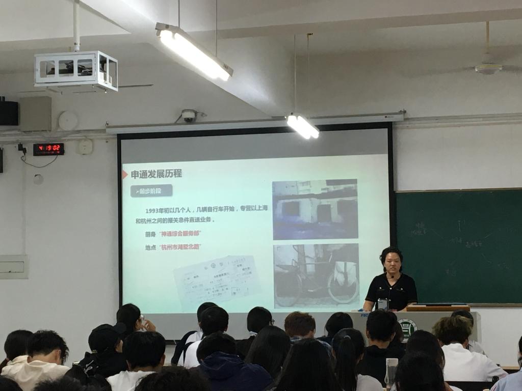 范玉杰以“数智背景下物流业未来发展前景及人才需求”为题对中国民营快递企业的发展历程、快递物流未来发展趋势及人才需求情况进行了分析。报告指出,中国物流行业大有可为,同学们要学好专业知识,为物流行业的快速发展贡献自己的力量。她告诫同学们一定要认真学习,把握机遇,清晰规划职业生涯,为自己未来踏入职场提前谋划。讲座中,范玉杰总经理与同学们现场互动,积极交流,为同学们答疑解惑。