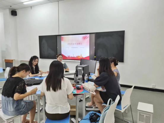 教师们结合自己的课程安排,互相分享自己如何将课程思政融入课堂教学实践的方法和经验。教师们一致认为,立德树人是高校教育工作的根本目标,课程思政的建设就是要在知识传授和能力培养中帮助学生塑造正确的人生观价值观。在日常教学授课期间,要立足传统文化,通过对传统文化的深入挖掘,提炼其中所蕴含的思想价值和精神内涵,加强对学生家国情怀、文化精神和审美素质的教育,引导学生深刻理解中华优秀传统文化中的文化精髓,坚定中华文化的民族自信。要努力培养学生养成正确的世界观、人生观和价值观,坚持以历史的发展的眼光看问题,培养实事求是的态度,勇于承担学习者、传承者的使命和责任感。