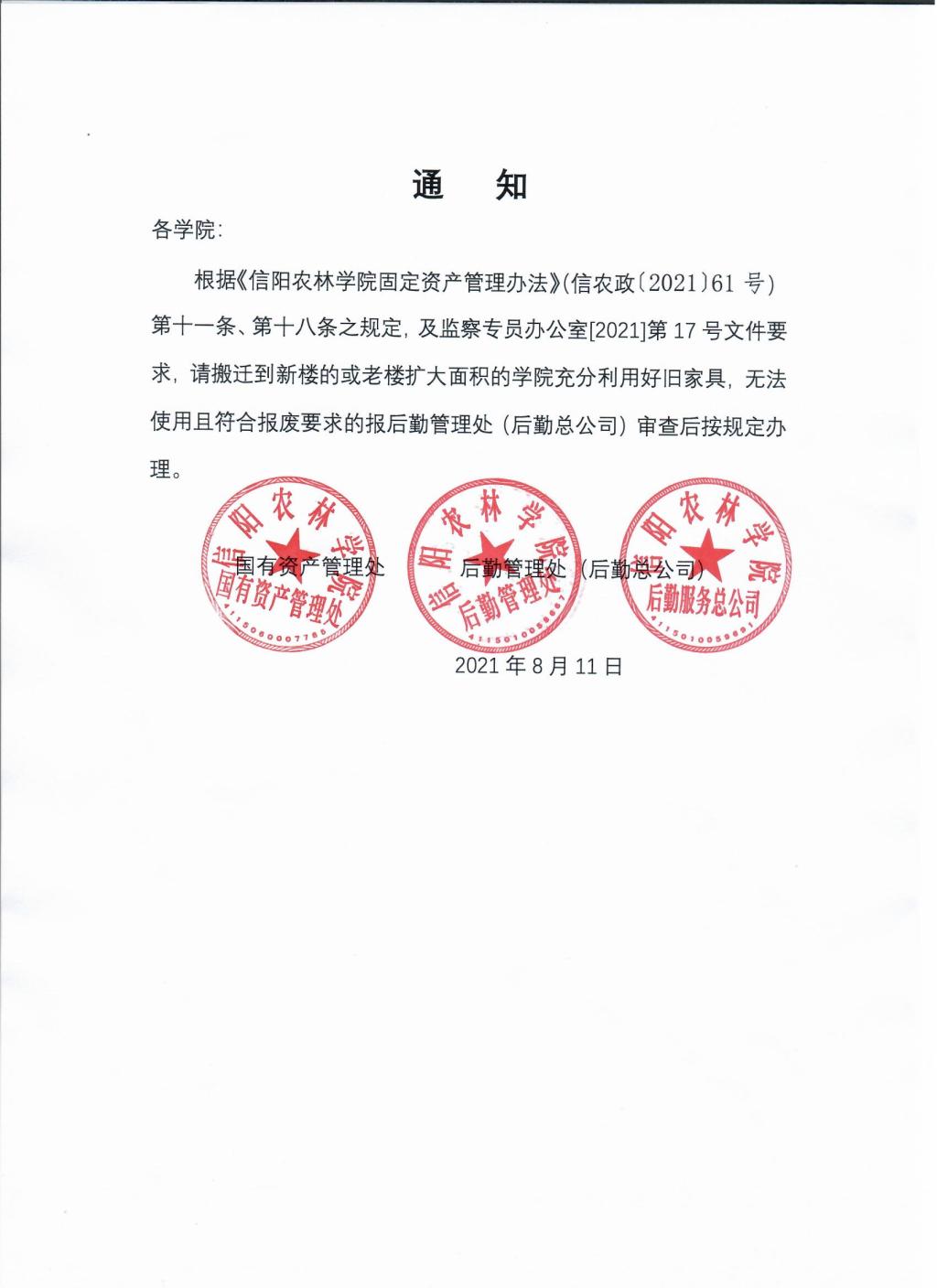 关于搬迁学院充分利用旧家具的通知