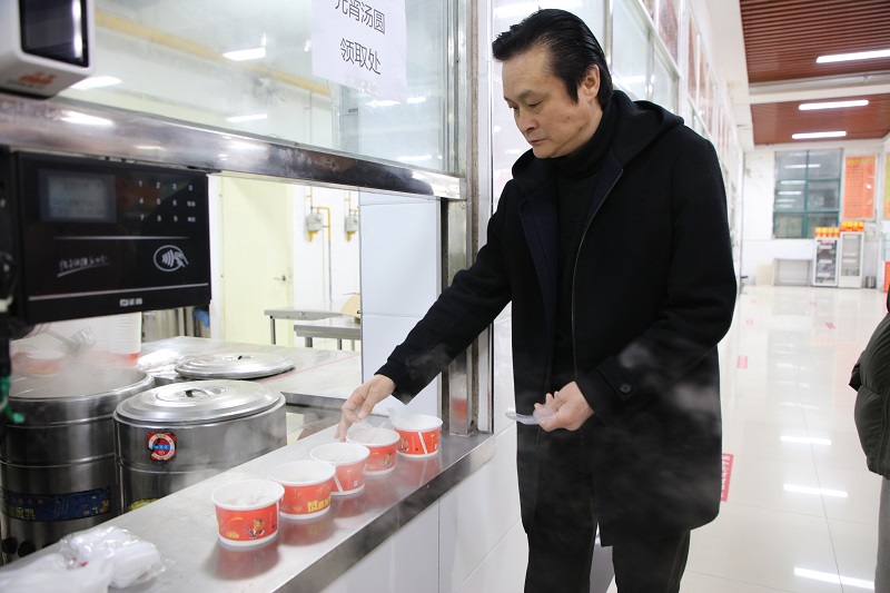 为了让学生们吃上可口的汤圆,后勤餐饮管理中心工作人员进行了精心准备。元宵节当天中午十一点半,二餐一楼的学生食堂开始免费向学生们派发汤圆。李巨处长和简频捷部长先详细了解元宵节为学生赠送汤圆活动的准备情况,随后亲手为排队的同学们准备餐具盛上热气腾腾的汤圆,亲切的到学生们中间询问学生返校后的情况,并祝同学们元宵节快乐!