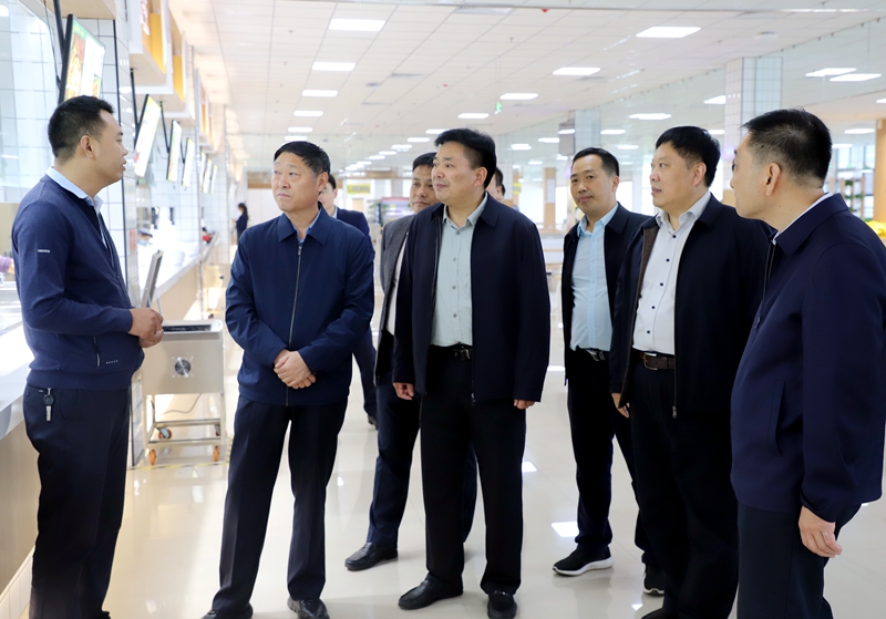10月9日,市政协主席孙同占、信阳市场监管局局长张向阳、信阳市城管局局长程功言深入beat365在线平台官网调研指导校园食品安全工作。校党委书记黄松、副校长张光辉以及相关部门负责人参加调研。