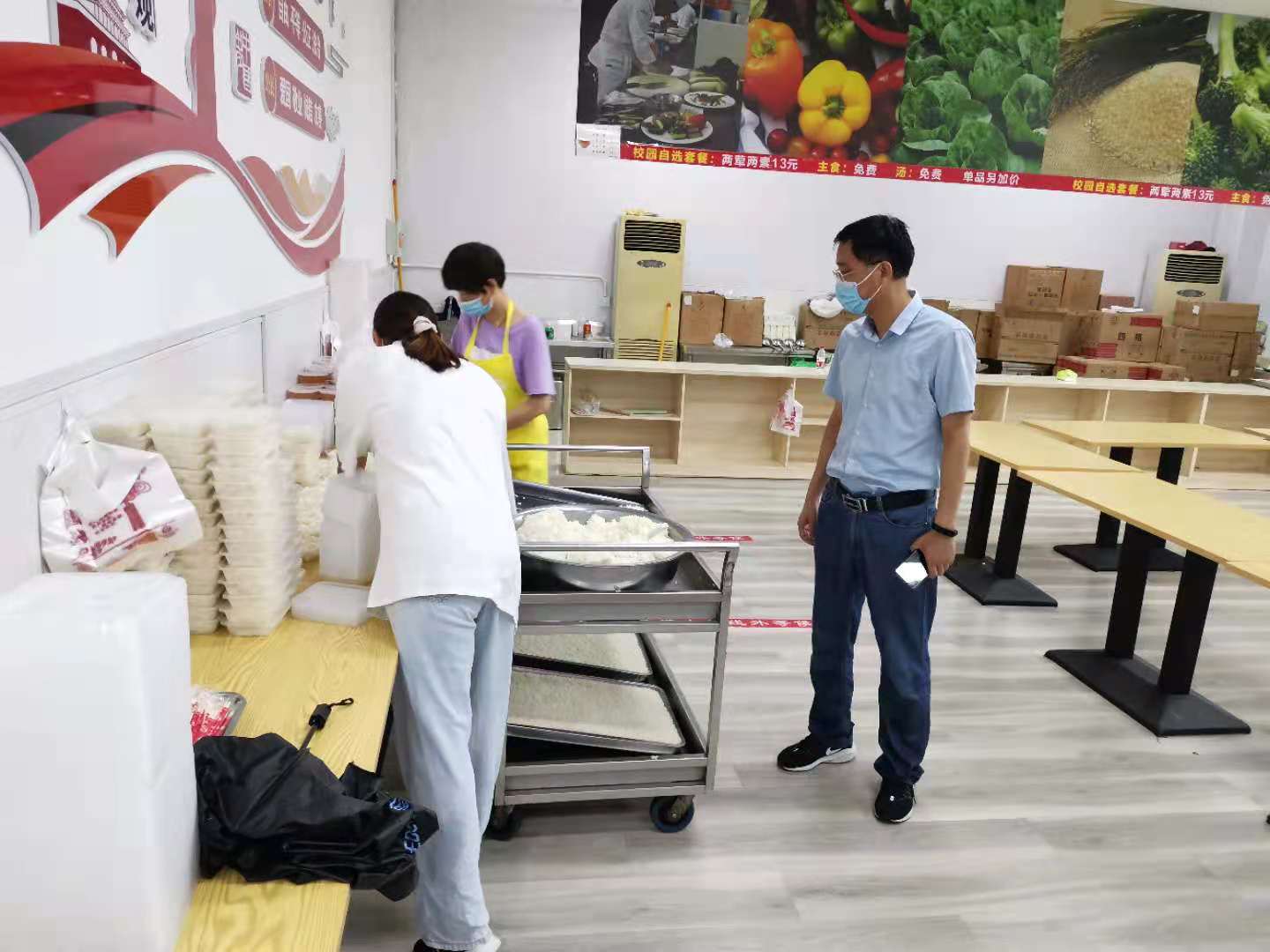 李书记先到校园医院查看了beat365在线平台官网防疫物资储备情况,随后到学生公寓查看了疫情期间公寓进出管理情况与暑假期间留校学生住宿生活情况,并要求严格落实好公寓楼进出测温登记制度,最后李书记到食堂教工餐厅查看了各类疫情防控措施的落实情况。