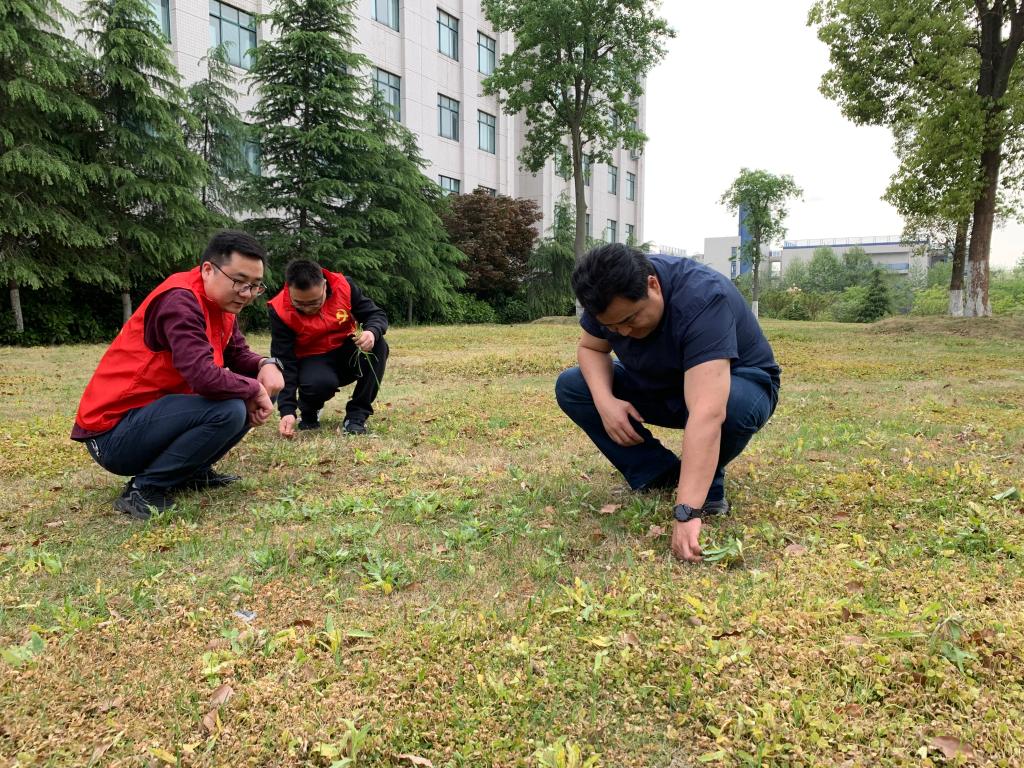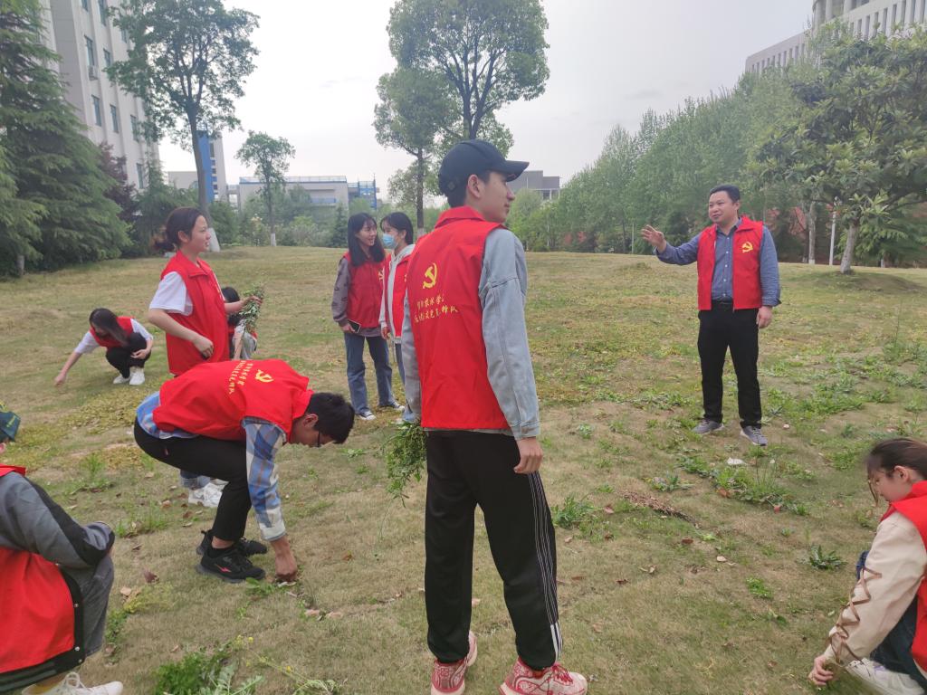 2022年4月12日,后勤党总支携手“三叶草学生志愿者服务队”在后勤第一党支部书记王道大、第二党支部书记黄镶的带领下,开展了“除草护绿 美化校园”校园绿化养护活动。