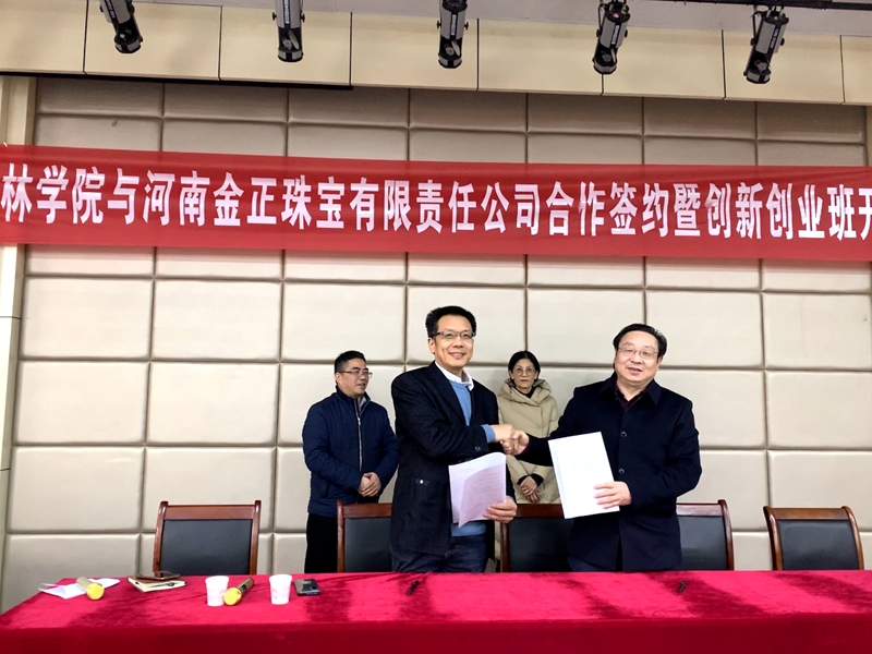 12月25日下午,beat365在线平台官网与河南金正珠宝有限责任公司合作签约暨创新创业班开班仪式在第一教学楼E101举行。副校长王万玲、河南金正珠宝有限责任公司董事长华文海、创新创业中心主任胡显淼、规划与设计学院院长胡正元、规划与设计学院党总支书记张淼、河南金正珠宝有限公司相关人员以及规划与设计学院师生参加签约暨开班仪式。