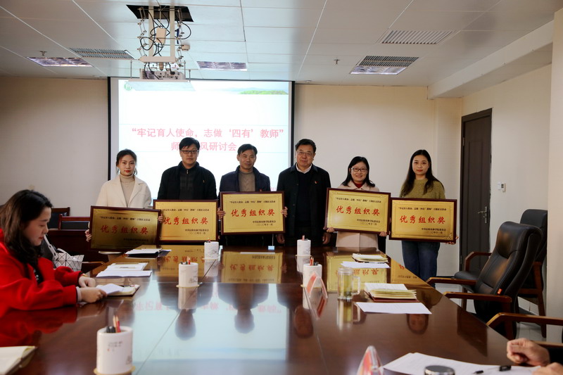 会上,李君茹宣读了“牢记育人使命,志做‘四有’老师”师德师风征文获奖人员名单,刘光生、赵聘分别为优秀组织奖、特等奖、一等奖获得者颁发证书。