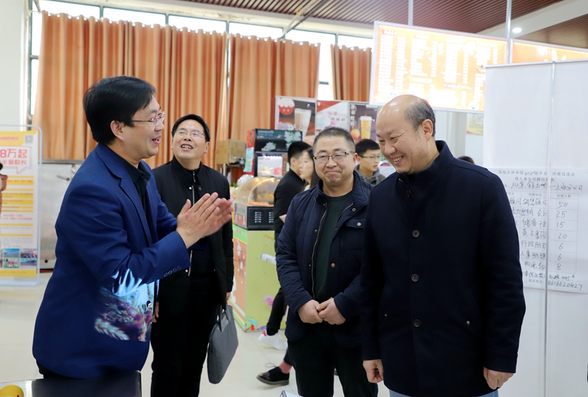 招生就业处全体工作人员,各学院党总支书记、院长、辅导员深入供需见面会现场与用人单位和毕业生交流,了解用人单位招聘需求,引导毕业生积极求职。